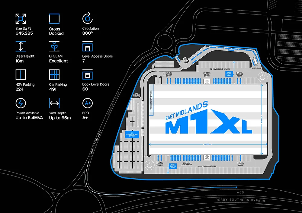 M1 XL is in an established industrial and logistics location, close to some of the country’s largest and most successful logistics developments including Segro Logistics Park East Midlands Gateway (4 miles) and East Midlands Distribution Centre (3.5 miles).